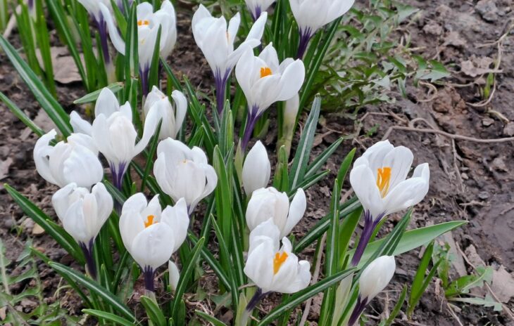 В этом году первоцветы буквально вырвались на свободу, едва растаял снег. На деревьях уже заметны набухшие почки, а на газонах пробивается свежая трава. Луковичные растения, такие как крокусы и подснежники, стали первыми в череде весенних изменений. Пролески сибирские, известные своим насыщенным синим цветом, также не остались в стороне и уже радуют прохожих.